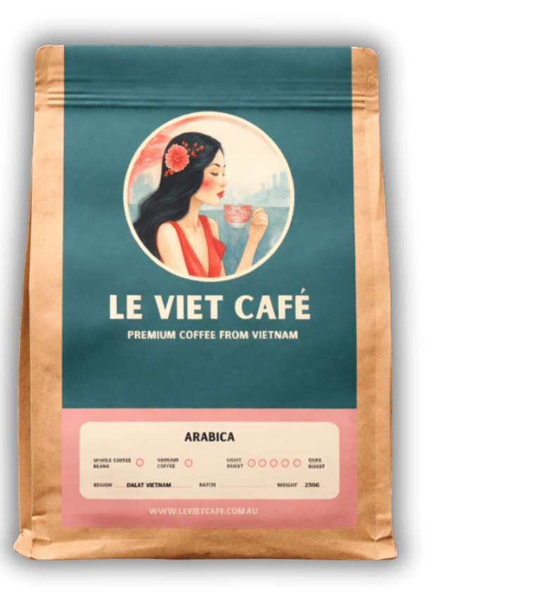 Le Viet Café is a premium Vietnamese coffee brand in Australia, bringing the bold, authentic taste of traditional Vietnamese coffee to modern coffee lovers. Our beans are carefully sourced from Vietnam’s highlands, including Da Lat, and expertly roasted in Australia for maximum freshness and flavour.